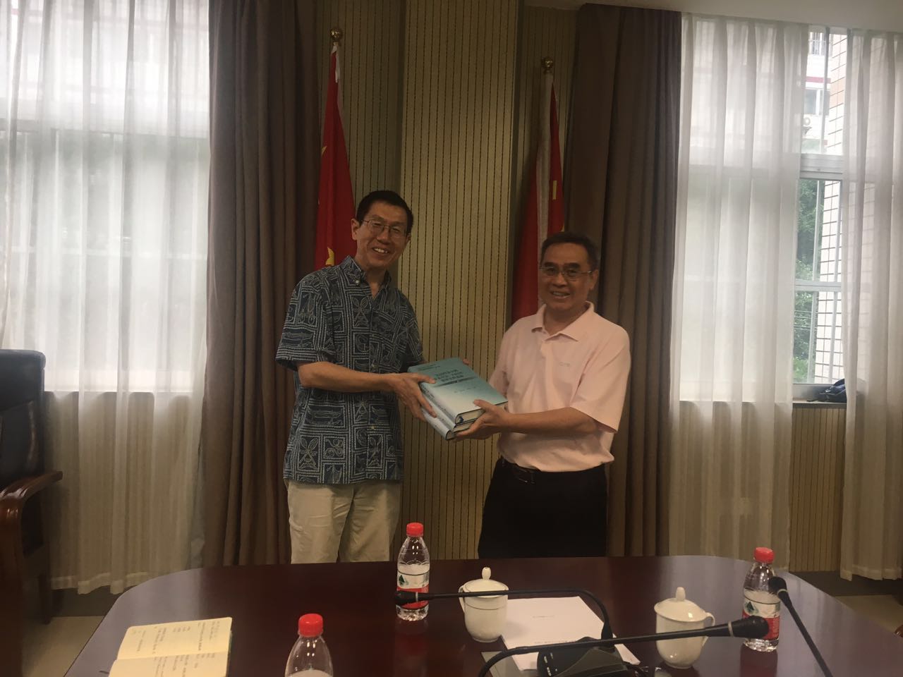 谢副院长给孙教授赠书《法国档案中的清末中法(中越边界)划界史料选编(全三卷)》