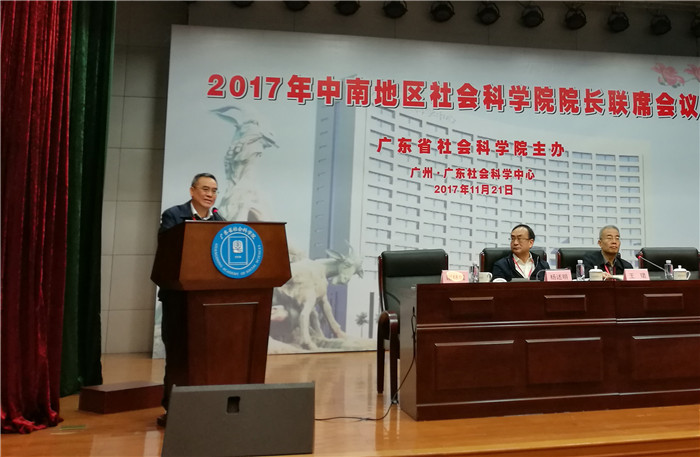11月21日, 2017年中南地区社科院院长联席会议在广州召开,此次会议由广东省社会科学院主办,中国社会科学院副院长张江、广东省副省长黄宁生出席开幕式并致辞。中国社科院、中南地区各省区社科院以及天津、河北、山西、内蒙古、上海、浙江、福建、陕西等省市社科院的领导和专家学者共100余人参加会议。我院谢林城副院长带领科研处、数量经济所主要负责人、党群处工作人员出席会议。谢林城副院长在大会发言,交流我院新型智库建设的经验做法。