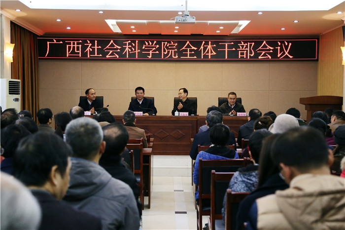 随后,李海荣同志作了发言,他对近两年来院领导以及全体干部职工在工作上给予的大力支持表达了谢意,并对社科院未来的发展表达了衷心祝愿。陈立生同志作了发言,他首先感谢了组织的培养信任,感谢广西社科院干部职工对他工作的支持,同时对我院现在取得的成绩感到高兴,最后希望全院干部职工继续发挥艰苦奋斗精神,齐心协力,推动全院工作再上新台阶。