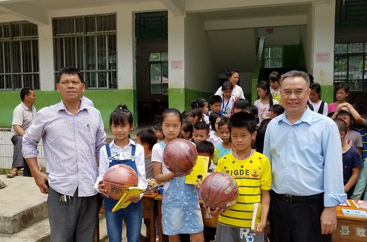 谢林城副院长代表我院给颁桃村小学在校学生赠送了新课本、文具和体育器材,并勉励他们要努力学习,争当飞出大山的“金凤凰”,同时提前向他们致以节日的问候。