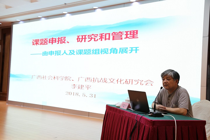 2018年5月31日上午,我院文化研究所李建平研究员受邀为广西区社科联社会组织骨干培训班学员作题为《课题申报、研究与管理》课题研究讲座。