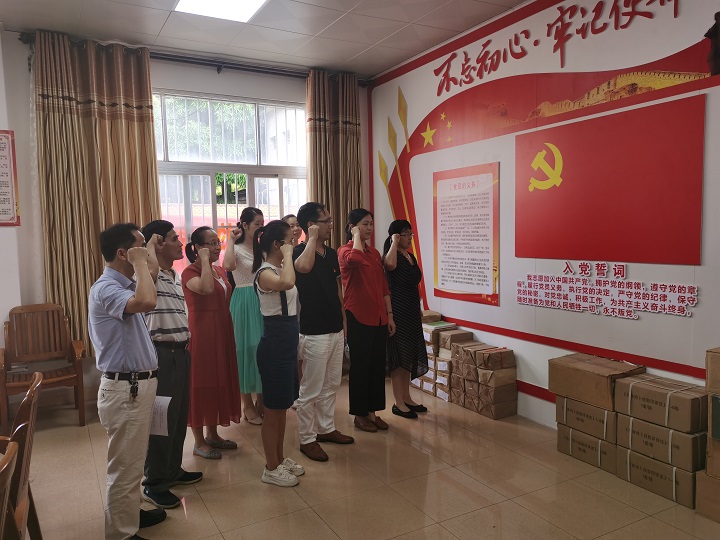 图2:过“政治生日”的党员与支部其他党员一起重温入党誓词