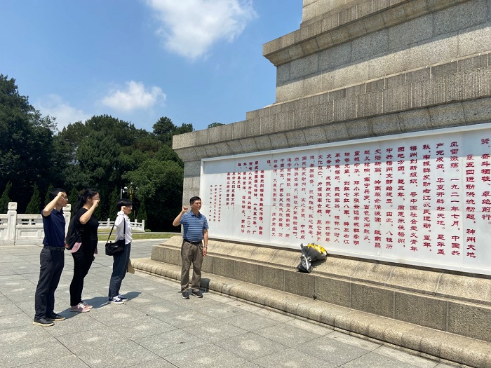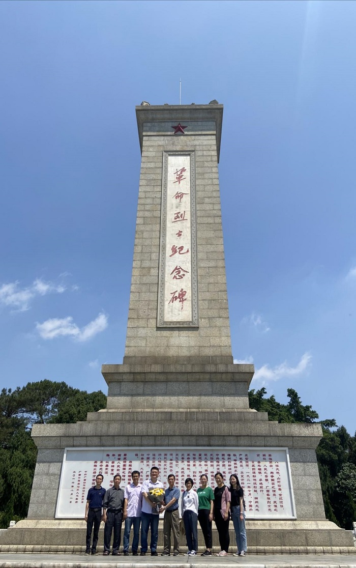 在革命烈士纪念碑前,全体人员面向烈士纪念碑三鞠躬,支部书记周可达和民族所所长蒋斌向烈士敬献菊花,向革命烈士致敬默哀,表达对革命烈士无限哀思之情,深切缅怀革命先烈的丰功伟绩。党员同志重温了入党誓词,接受了一次心灵的洗礼。
