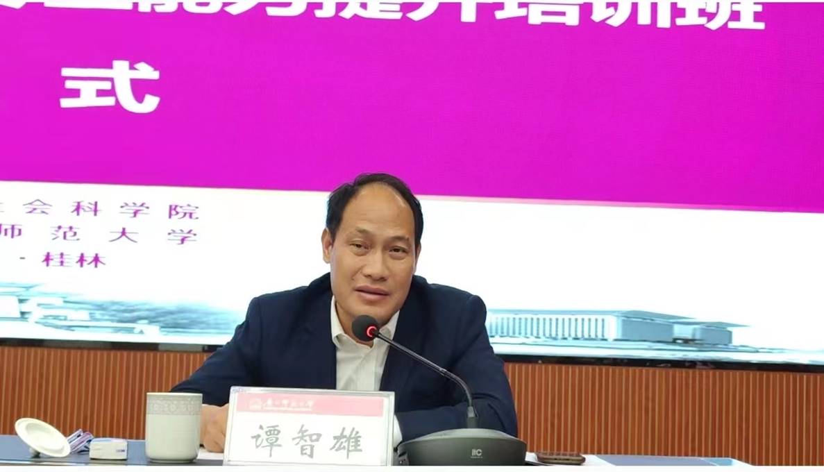 图2:广西师范大学党委组织部常务副部长谭智雄在结业式上致辞