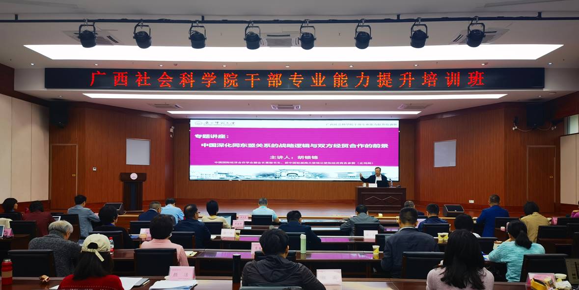 此次培训开班以来,按照培训方案,围绕领导干部和科研骨干专业能力的提升,设置了《加强马克思主义中国化最新成果的研究阐释》《国学文化对干部素质提升的启示》《中国深化同东盟关系的战略逻辑与双方经贸合作的前景》等专题课程,同时还组织开展了现场教学,引导广大学员深入学习习近平总书记“两山理论”及视察漓江时的重要指示精神,实地了解桂林文化品牌打造、创建“工业+文化+旅游”三产结合新业态的情况。